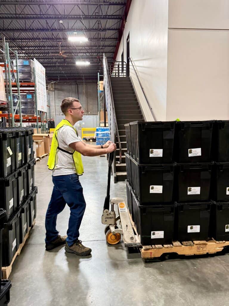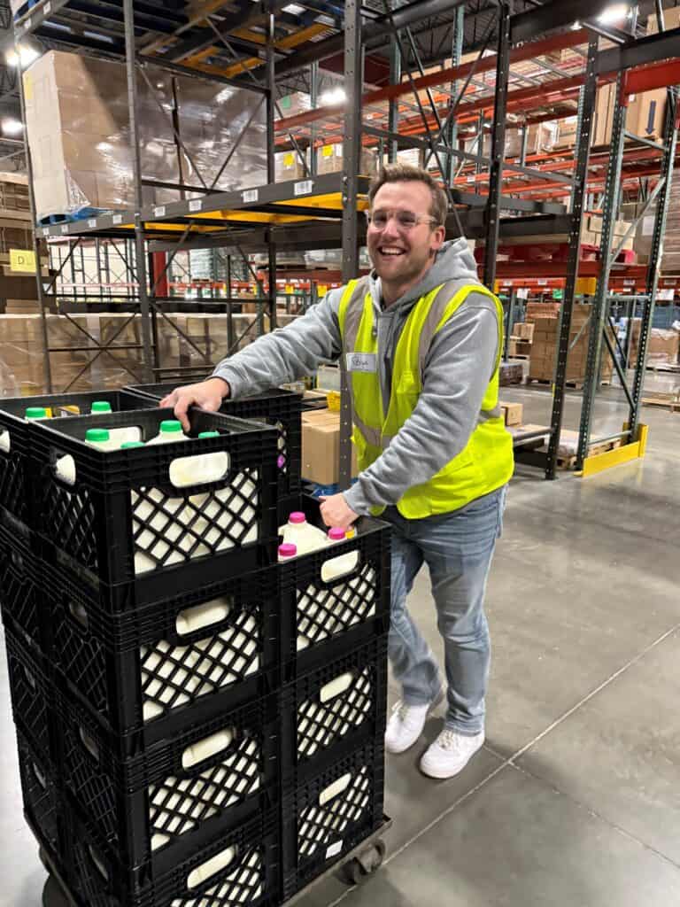 During the event, HR Green employees sorted and stacked 17,000 gallons of milk on pallets for transport and assembled more than 1,000 Backpack Program bags, providing essential support to children and families facing food insecurity.
