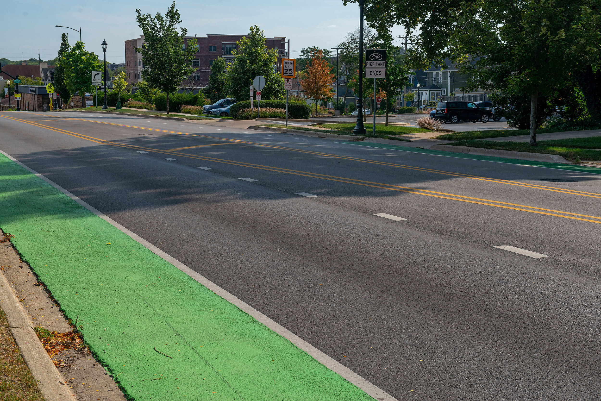 Main Street is one of the most important corridors in the Village of Downers Grove, Illinois, serving neighborhoods, schools, the downtown district, and the Metra station. As traffic volumes and multimodal demands grew, the existing four-lane undivided roadway created safety and mobility challenges, including higher vehicle speeds, complex turning conflicts, and an uncomfortable walking and biking environment. The Village needed a corridor strategy that improved safety and access for all users while maintaining efficient operations and supporting neighborhood livability without triggering major right-of-way impacts or high-cost reconstruction.