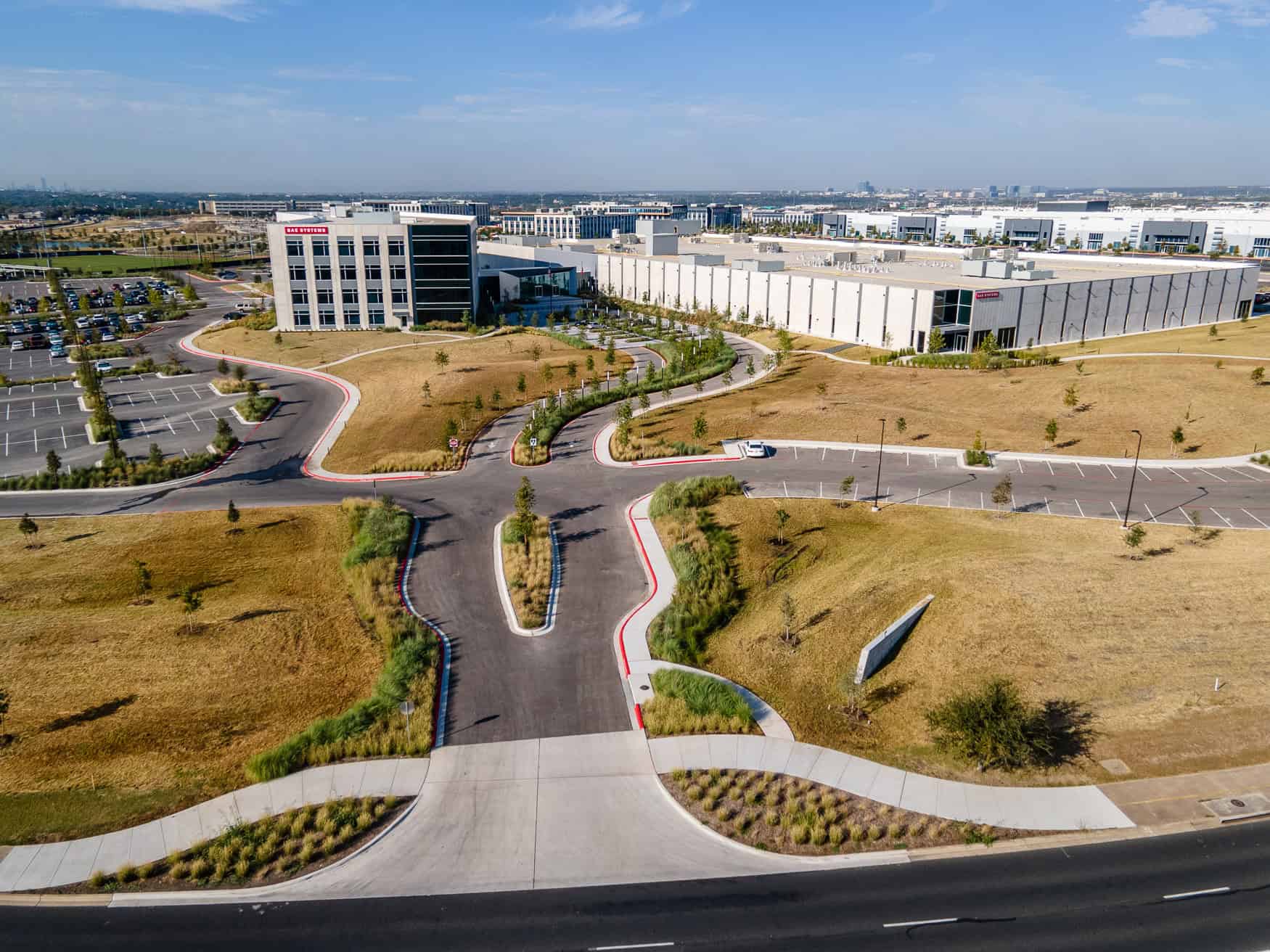 Challenge: Parmer Sector 8 is a mixed-use development that began as a Dell campus and evolved into a primary manufacturing hub. The challenge was to develop the industrial land while maintaining site balance on the sloped property, enabling minimal grade adjustments, and achieving a functional layout for walking, parking, and common areas.